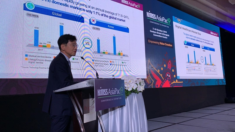Kim, Young-hak, director of the Health Innovation and Big Data Center, presents at the HIMSS AsiaPac on the subject of